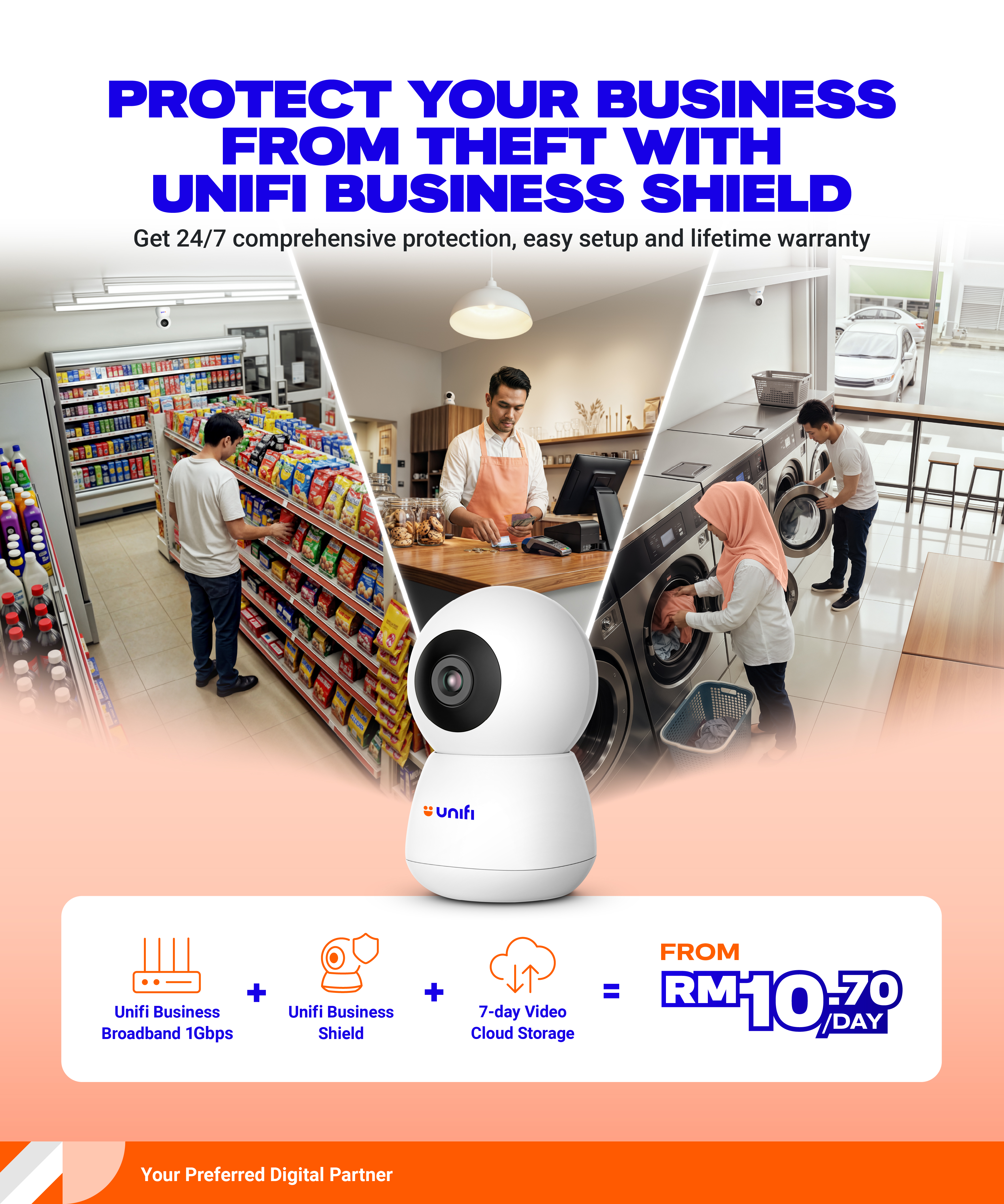 With Unifi Business Shield, you can see what's happening in and around your business instantly, wherever you are with real time notification using motion detection technology and cloud video playback.